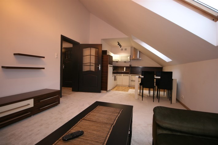 Widokowy apartament zlokalizowany w cichej, spokojnej dzielnicy Ustronia - Jaszowcu. W pobliżu znajdują się wyciągi narciarskie i górskie szlaki. Mieszkanie w pełni wyposażone i umeblowane, składające się z sypialni, aneksu kuchennego połączonego z salonem z wyjściem na widokowy balkon. Dodatkowo w mieszkaniu jest mała antresola. Powierzchnia mieszkania liczona po podłodze wynosi 82mkw. Do mieszkania przynależy piwnica i wiata garażowa. Teren nieruchomości jest ogrodzony z bramą wjazdową zamykaną na pilota.